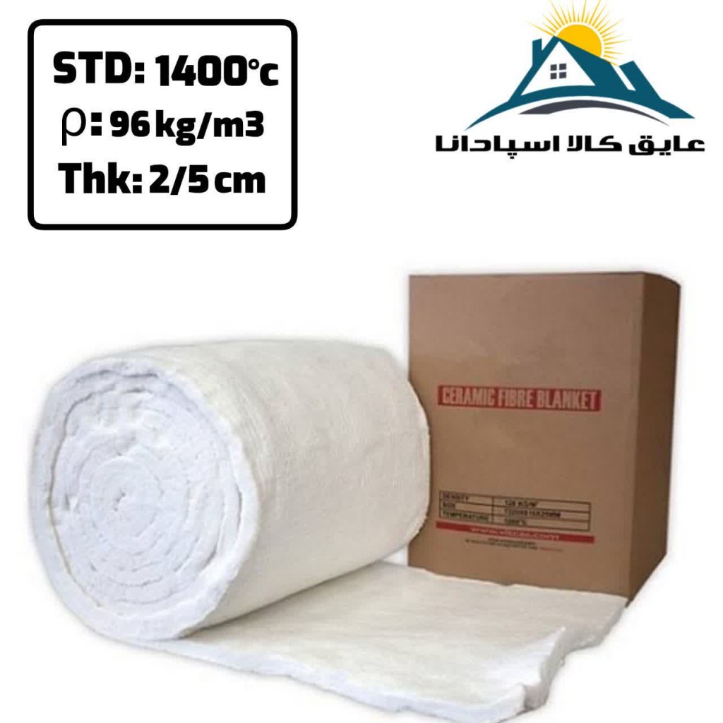 پشم سرامیک الیافی ضخامت 2.5 سانتی متر و دانسیته 96 گرید حرارتی 1400