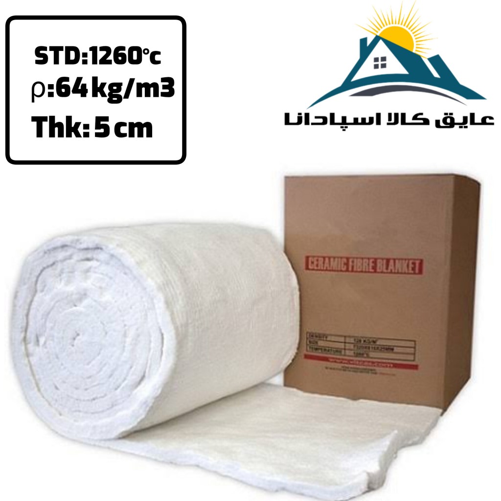 پشم سرامیک الیافی ضخامت 5 سانتی متر و دانسیته 64 گرید حرارتی 1260